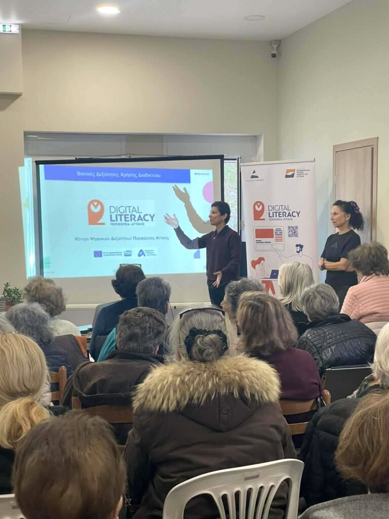 Το Κέντρο Ανάπτυξης Ψηφιακών Δεξιοτήτων Αττικής, στο πλαίσιο των δράσεών του για την ενίσχυση του ψηφιακού εγγραμματισμού των πολιτών, υλοποίησε με ιδιαίτερη επιτυχία ακόμα ένα σεμινάριο εκπαίδευσης στον Δήμο Χαϊδαρίου. Αυτή τη φορά συμμετέχοντες ήταν γυναίκες και άνδρες άνω των 65 ετών, ωφελούμενοι του Κέντρου Φιλίας Ηλικιωμένων (πρώην ΚΑΠΗ) Γρηγορούσας.