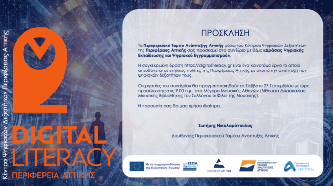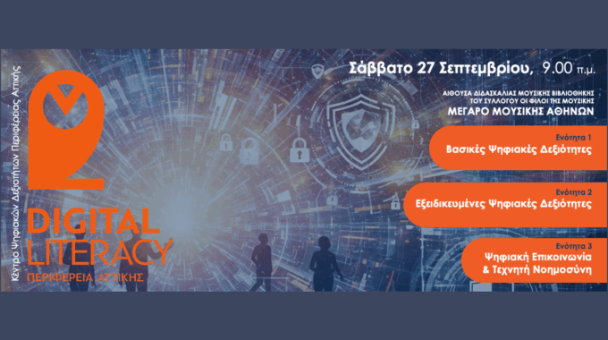 Στις 27 Σεπτεμβρίου 2025, με ώρα προσέλευσης 9:00 π.μ., θα πραγματοποιηθεί στο Μέγαρο Μουσικής Αθηνών το διαδραστικό συνέδριο που διοργανώνει το Κέντρο Ανάπτυξης Ψηφιακών Δεξιοτήτων της Περιφέρειας Αττικής. Το συνέδριο εστιάζει στην ανάπτυξη ψηφιακών δεξιοτήτων και περιλαμβάνει τρεις θεματικές ενότητες: Βασικές Ψηφιακές Δεξιότητες Εξειδικευμένες Ψηφιακές Δεξιότητες…